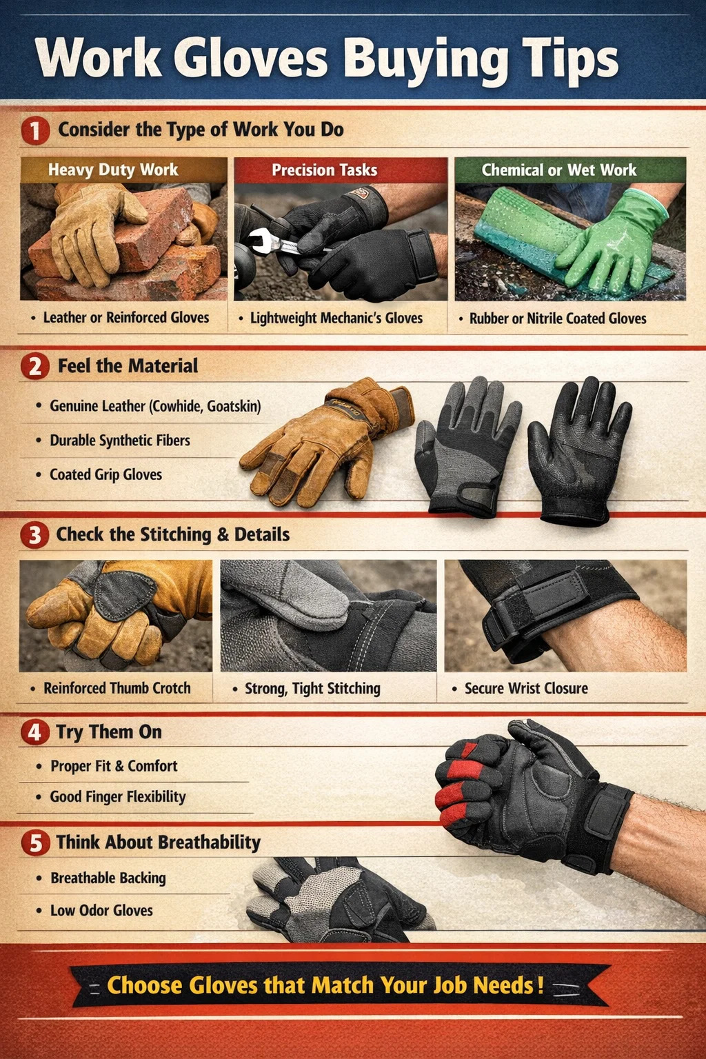 تتطلب الوظائف المختلفة أنواعًا مختلفة تمامًا من قفازات العمل .